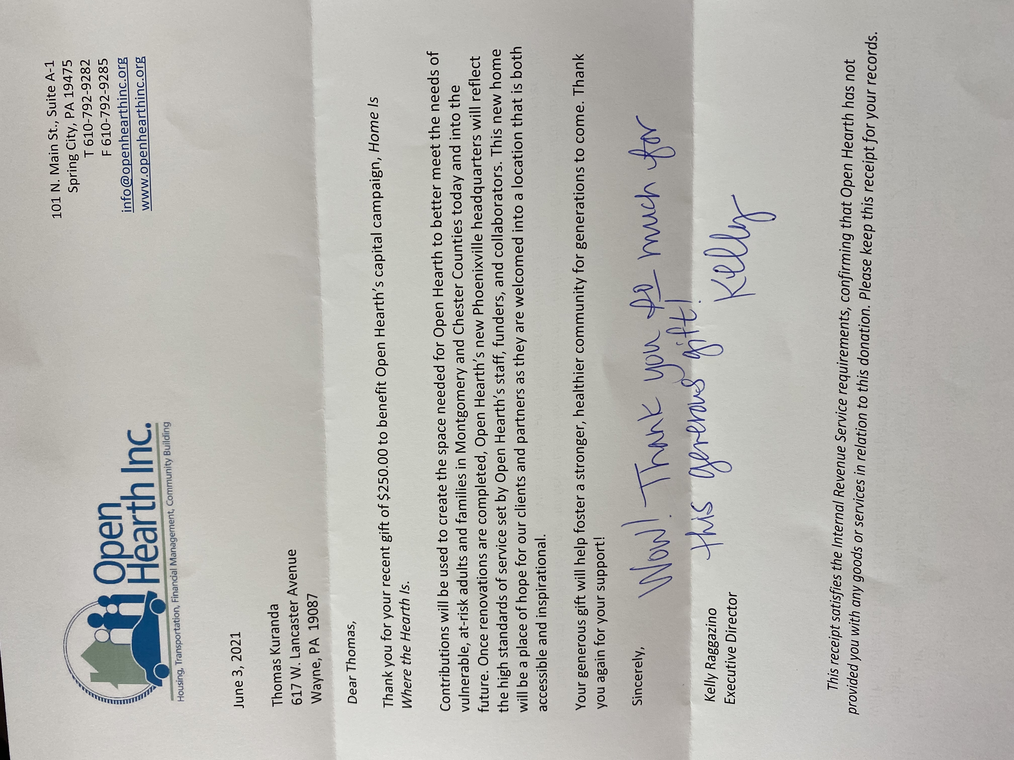 Kuranda supports Open Hearth's capital campaign, Home Is Where the Hearth Is.